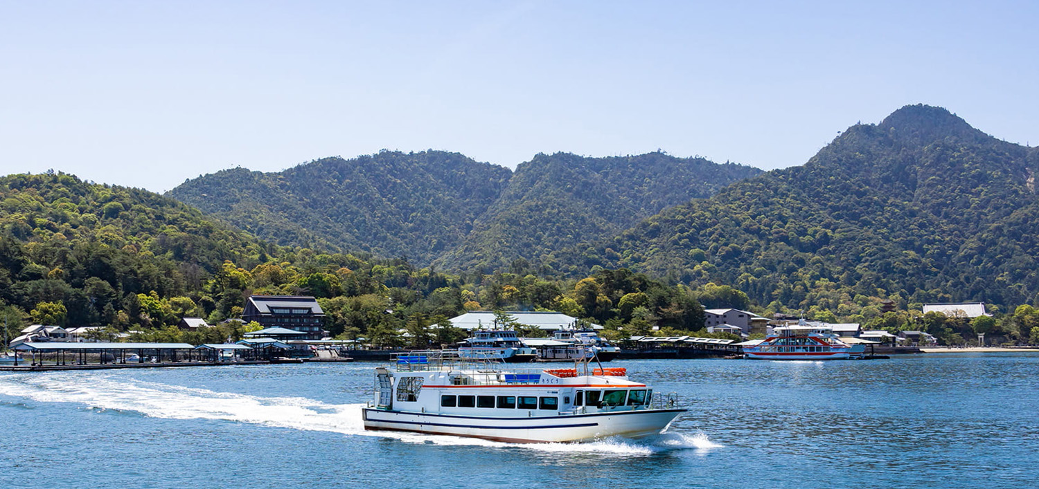 The high-speed ferry from Miyajimaguchi to Miyajima takes just about five minutes, connecting the mainland with the island quickly and conveniently. If you plan to go to Peace Memorial Park after visiting Miyajima, we recommend the "Package Ticket," which includes the World Heritage Sea Route. This convenient ticket makes it easy and affordable to travel between Miyajimaguchi, Miyajima, and Peace Memorial Park.