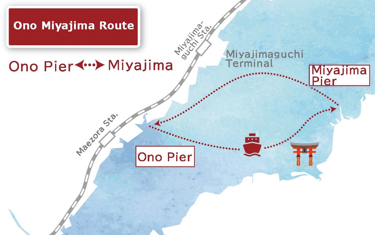 The Ono-Miyajima route connects Ono Pier and Miyajima.