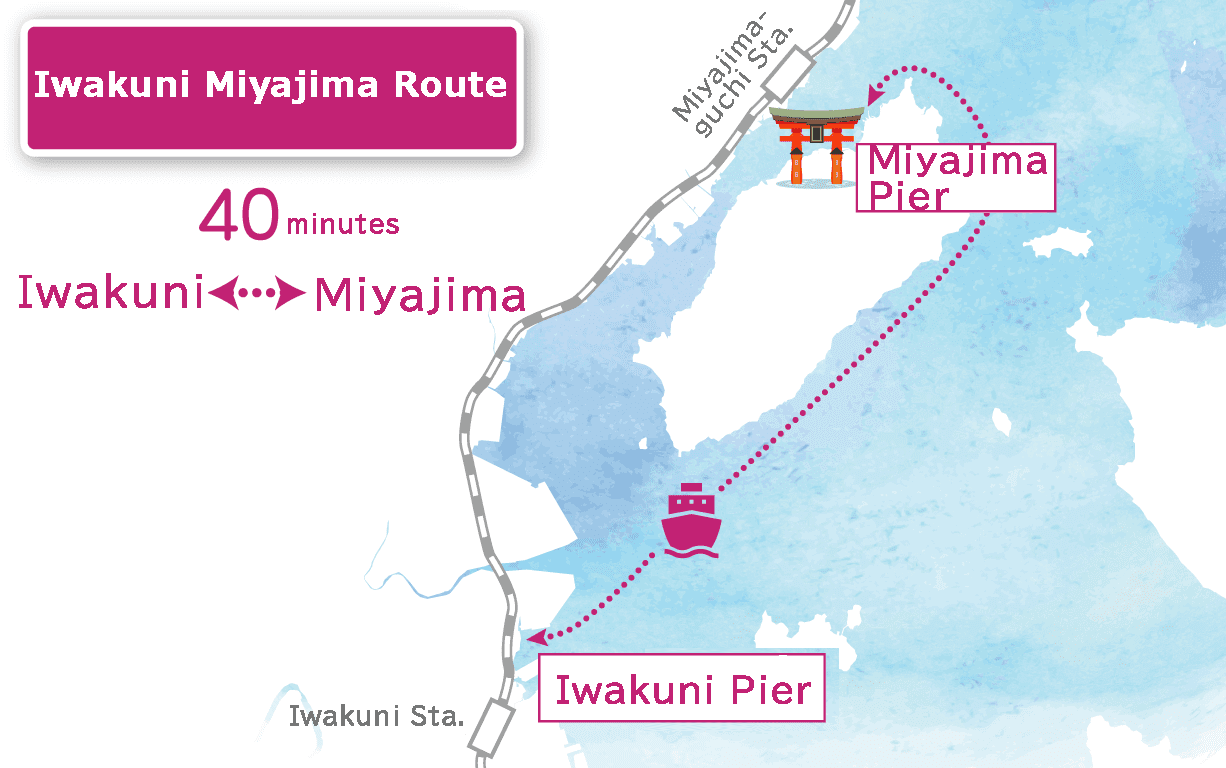 The route between Iwakuni Port and Miyajima takes about 40 minutes.