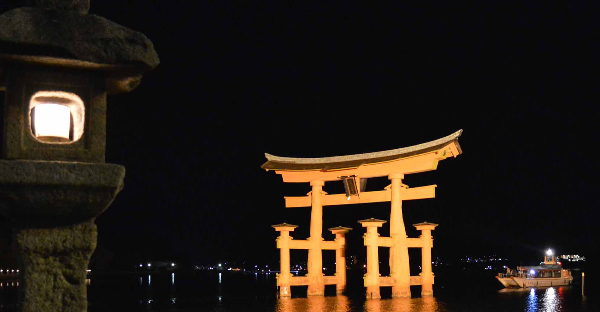 Take a Night Cruise to enjoy a close-up view of the illuminated Itsukushima Shrine and O-torii from the sea.