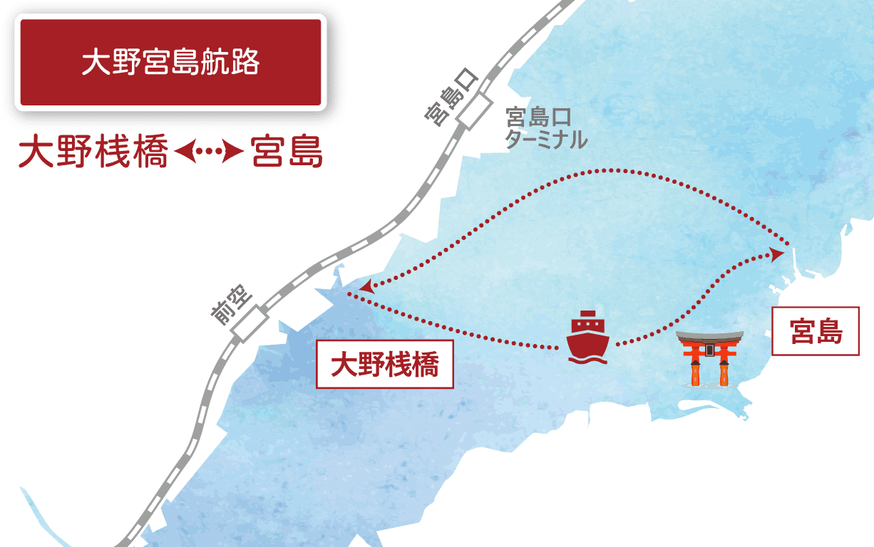 「大野宮島航路」は、大野桟橋と宮島を結ぶ航路です。