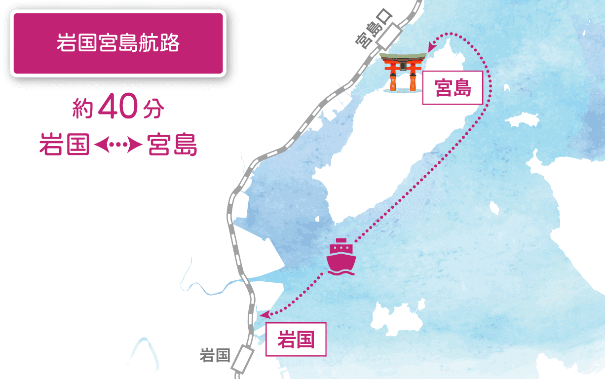 マリーナホップと宮島島内にある「宮島3号桟橋」を約25分で結びます。
