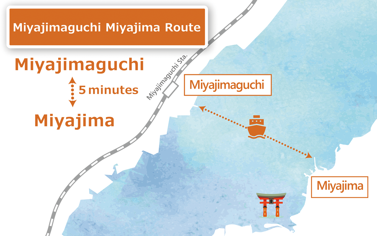 The Miyajimaguchi–Miyajima route offers a high-speed ferry service that takes approximately 5 minutes.